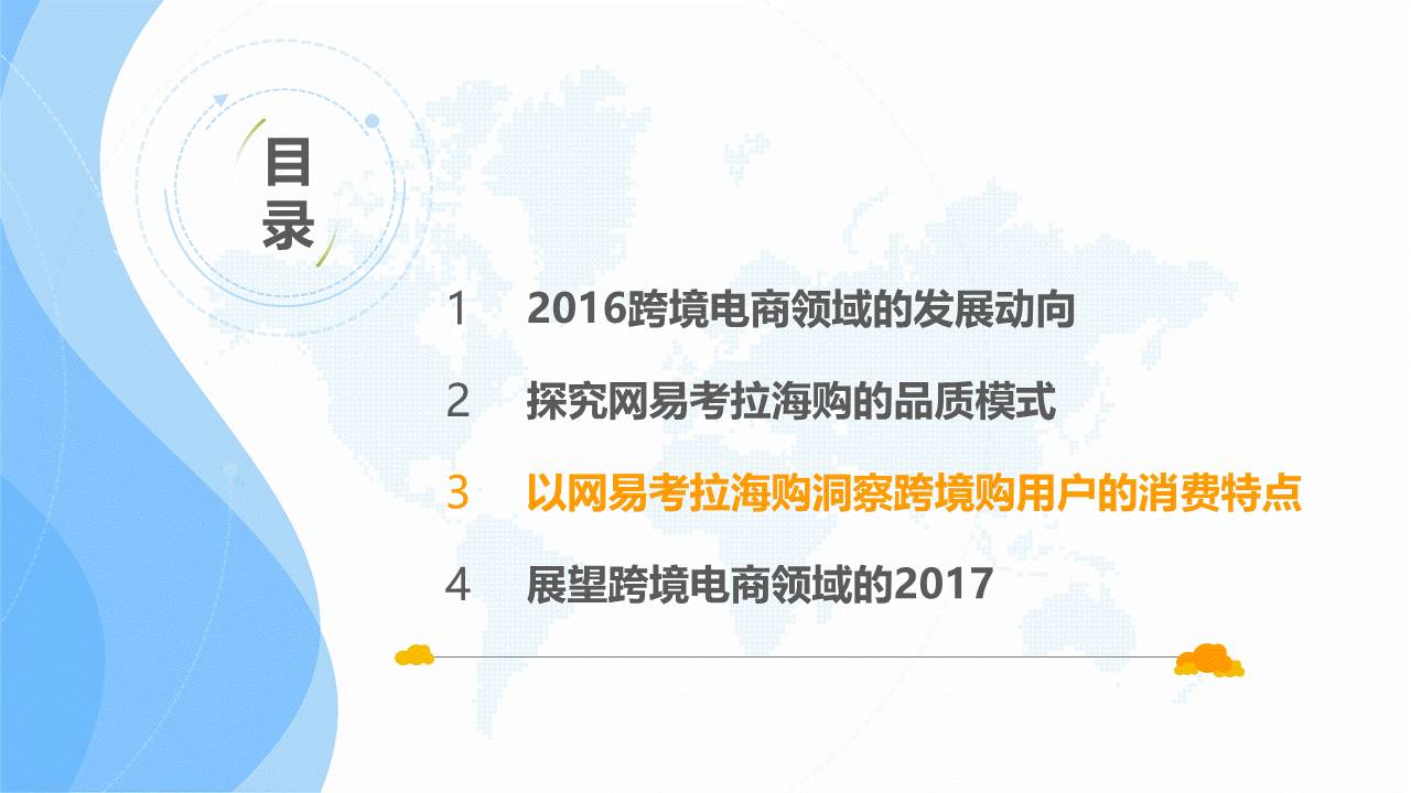 跨境电商市场在2016年经历了政策面的调整,经济环境的变动,以及用户消费倾向的变化等等一系列考验。有些厂商在考验与冲击下渐趋无声,逐渐消失在大众的视线中,而有些厂商则在其中探寻机会,谋求进一步的发展,网易考拉海购则无疑属于后者,他们在风起云涌的2016做了些什么,又有哪些表现?敬请在下面《跨境进口电商的2016与2017——网易考拉海购消费白皮书》中找寻答案: