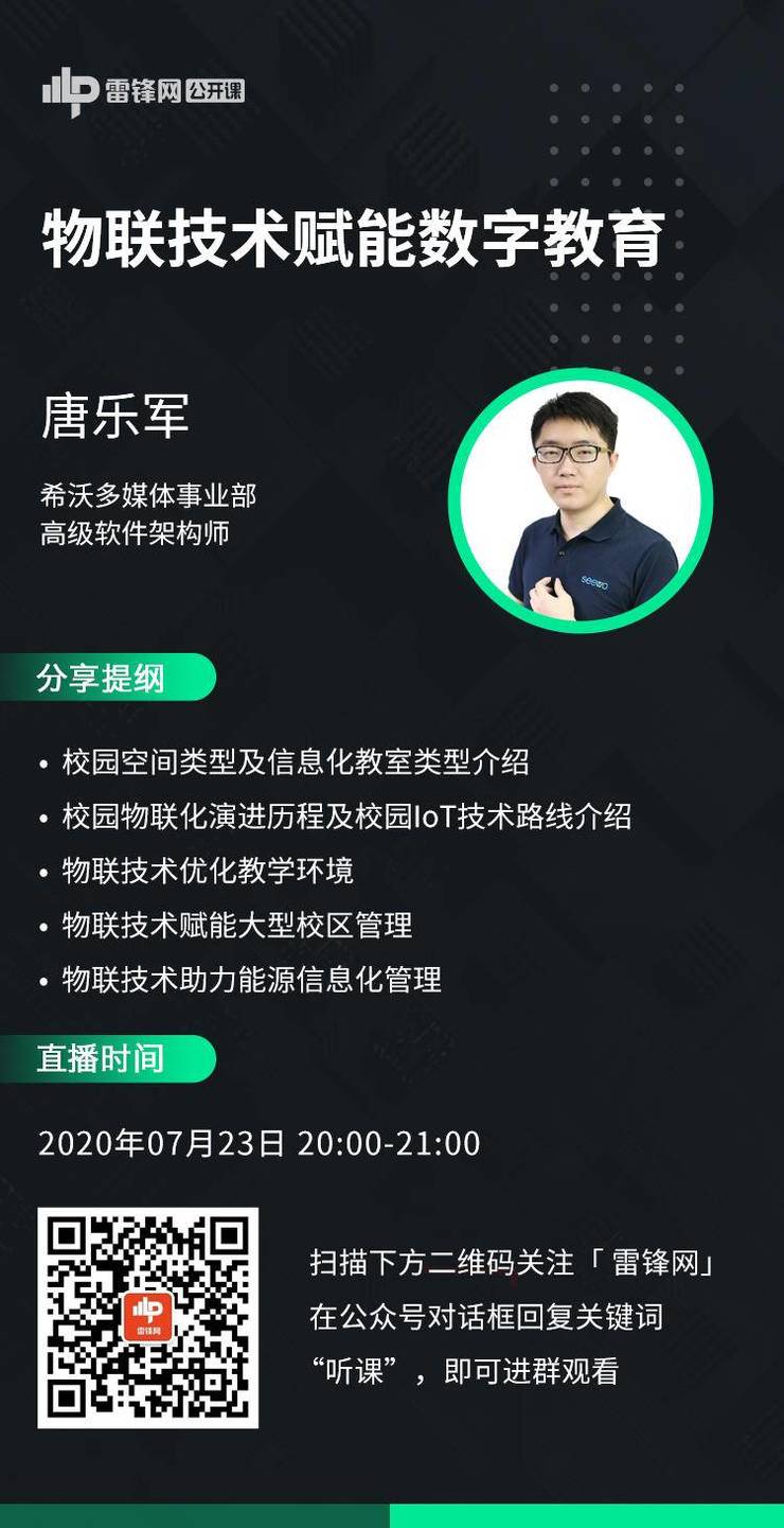 为此,雷锋网(公众号:雷锋网)邀请了希沃多媒体事业部高级软件架构师唐乐军,以“物联技术赋能数字教育”为主题,进行长达1小时的分享互动。