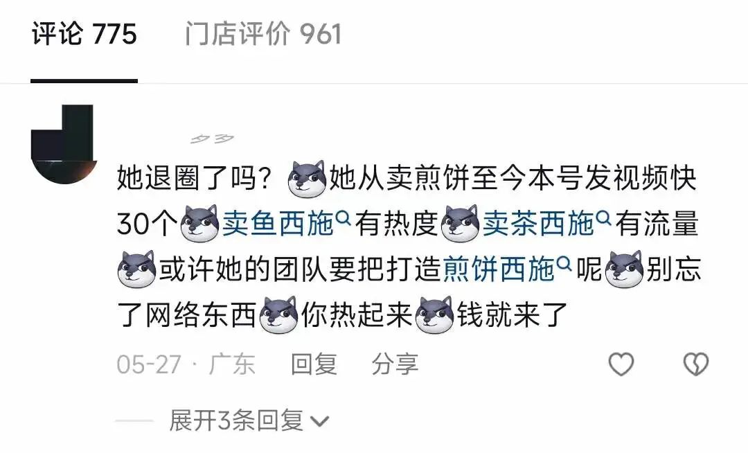 但一派祥和的背后是激烈的质疑。有人骂她擦边,有人认为一切都是炒作,也有人用暧昧的口吻将狗头萝莉比作“煎饼西施”。