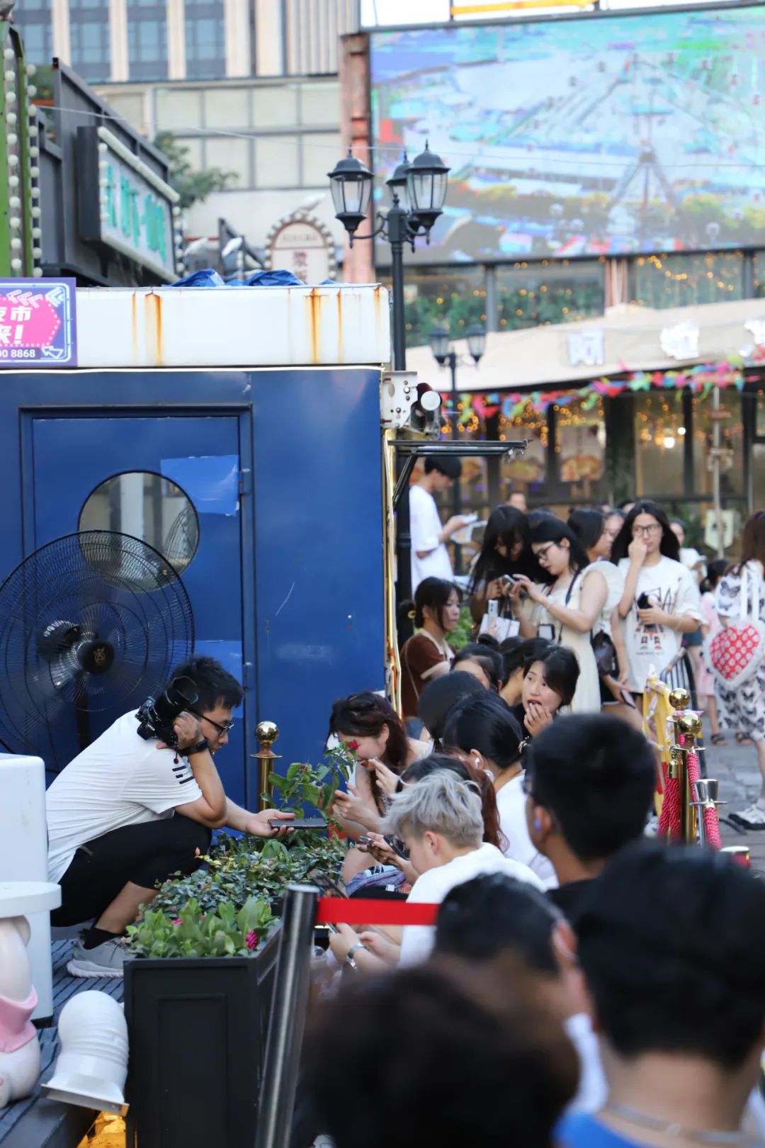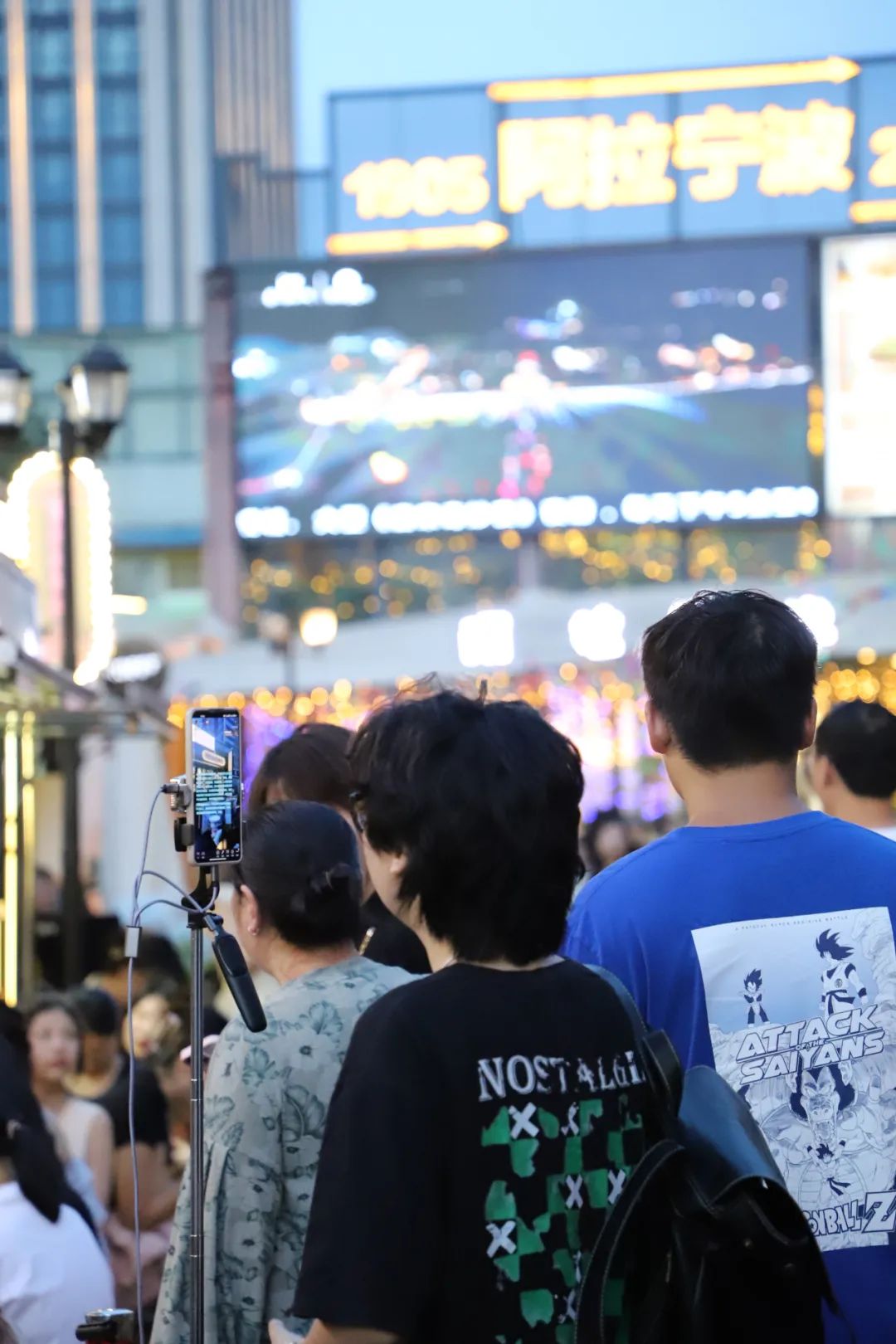 人群外围,两位保安大叔拿起喇叭,开始维持秩序。3位宁波本地博主则挤到煎饼摊前架起手机,准备全程