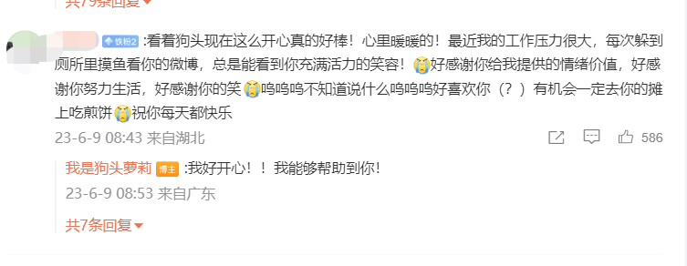 对网友来说,一张好看的照片,一次2分钟的互动,就可能成为难得的情绪养料。这些新来的粉丝大多被狗头萝莉摊煎饼时阳光快乐的模样所打动。