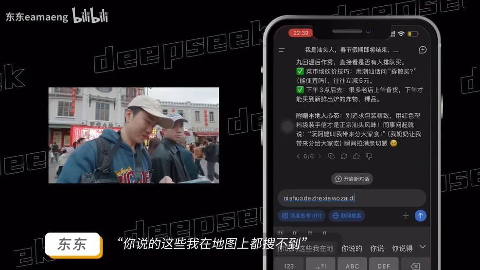 B站一位UP主就录制了一期《用DeepSeek推荐买汕头特产,结果翻车了吗?》。视频中,UP主向DeepSeek询问汕头手信店。虽然DeepSeek精准地读取了UP主的思维,按照生鲜、零食、茶叶、非遗手工品的分类进行了细分,显得专业又可靠,但事实上,它所推荐的店面统统不存在。