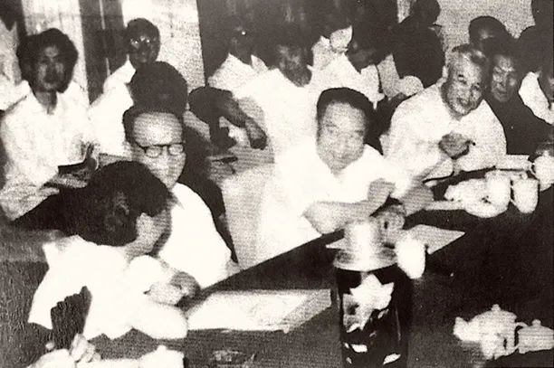 1978年,李凤兰在第五届全国人大一次会议期间与华国锋主席交谈户县农民画。(《李凤兰画集》)