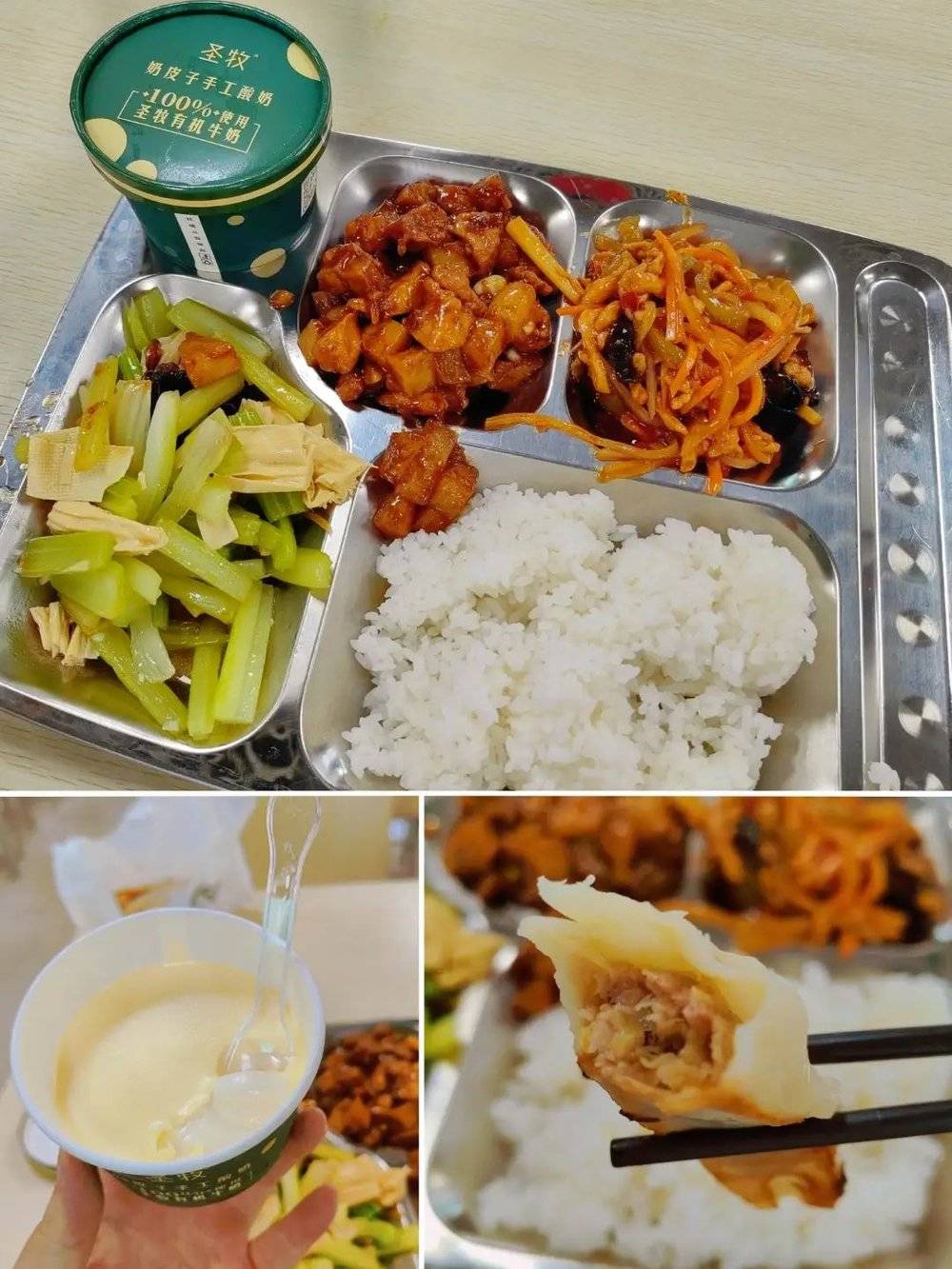 其次,体制内食堂,菜品的选择往往都非常家常、下饭。什么宫保鸡丁,鱼香茄子、西红柿炒鸡蛋等等。在这里,没有花里胡哨的“漂亮饭”,没有精致且刻意的摆盘,有的只是如同家一般的温馨和氛围。大师傅一阵猛火现炒,打饭阿姨的勺子宽而深,一勺下去手不抖,比菜还多的是肉。汤汁浓郁,咸淡适宜,无限量的续饭,甚至还包含水果和酸奶……这已经不能叫“宾至如归”了,这就是午餐版“回家的诱惑”。