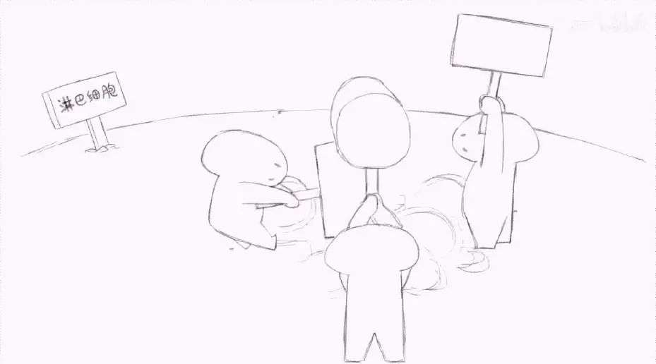 视频里,新冠疫苗被注射到人体内后,披上了新冠病毒的外衣,并不停招惹淋巴细胞。