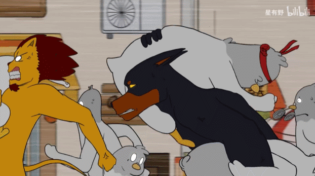 而在视频的最后,公鸡、狮子、驴都相继冲上前方,为顶住洪水而筑成了人墙:
