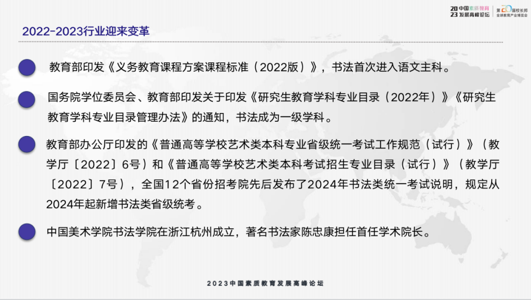 李六军表示,在素质教育兴起和传统文化回归的背景下,在2022年书法已正式成为一级学科,全国12个省份规定从2024年起新增书法类省级统考。接下来书法行业,还将会迎来一个大的变革,书法的重视程度,或者说未来的前景会更大,书法教育将迎来一个巨大的蓝海市场。