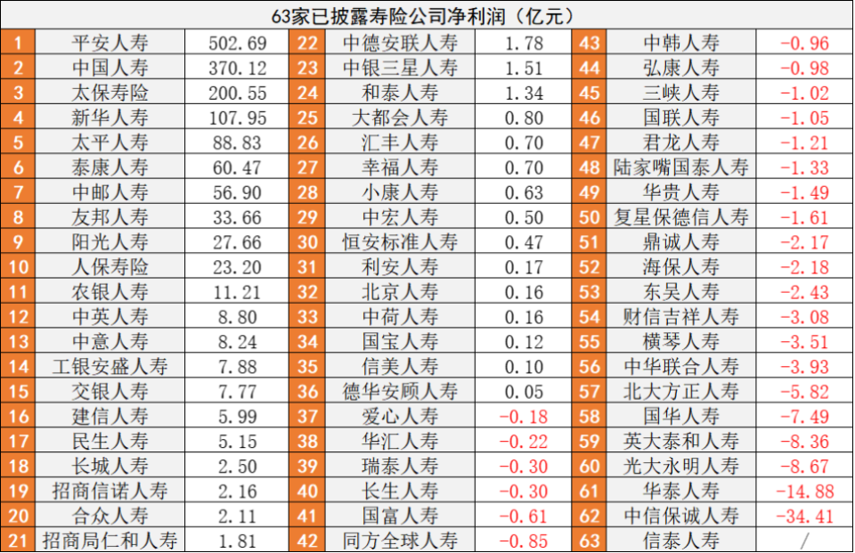 寿险众生相中,领头羊们盆满钵满、高奏凯歌的盛况,而以中信保诚人寿、华泰人寿为首的亏损险企则表现得格外落寞。上半年,中信保诚人寿亏损34.41亿元,为63家险企中亏损程度最大的一家,华泰人寿亏损14.88亿元位列亏损第二,另有24家险企亏损在10亿元以下,与头部寿险企业形成鲜明对比。