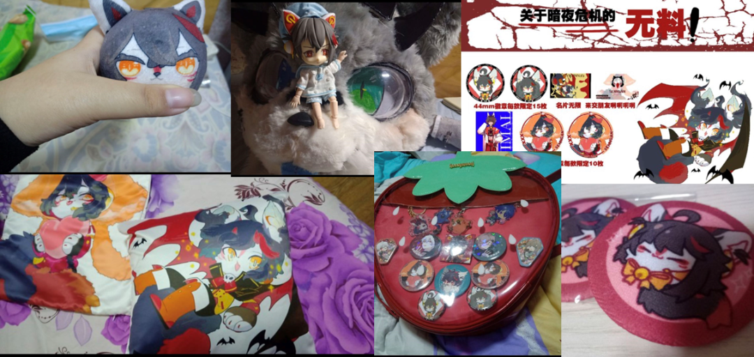 一些兽迷会使用兽设形象制作抱枕、立牌、挂件、徽章等。