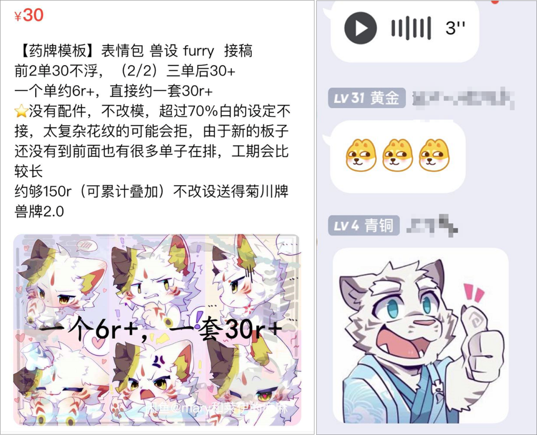 大部分兽迷在聊天时候会使用自己兽设制作的表情包 图源:闲鱼用户@ mary和莱伊的麻麻