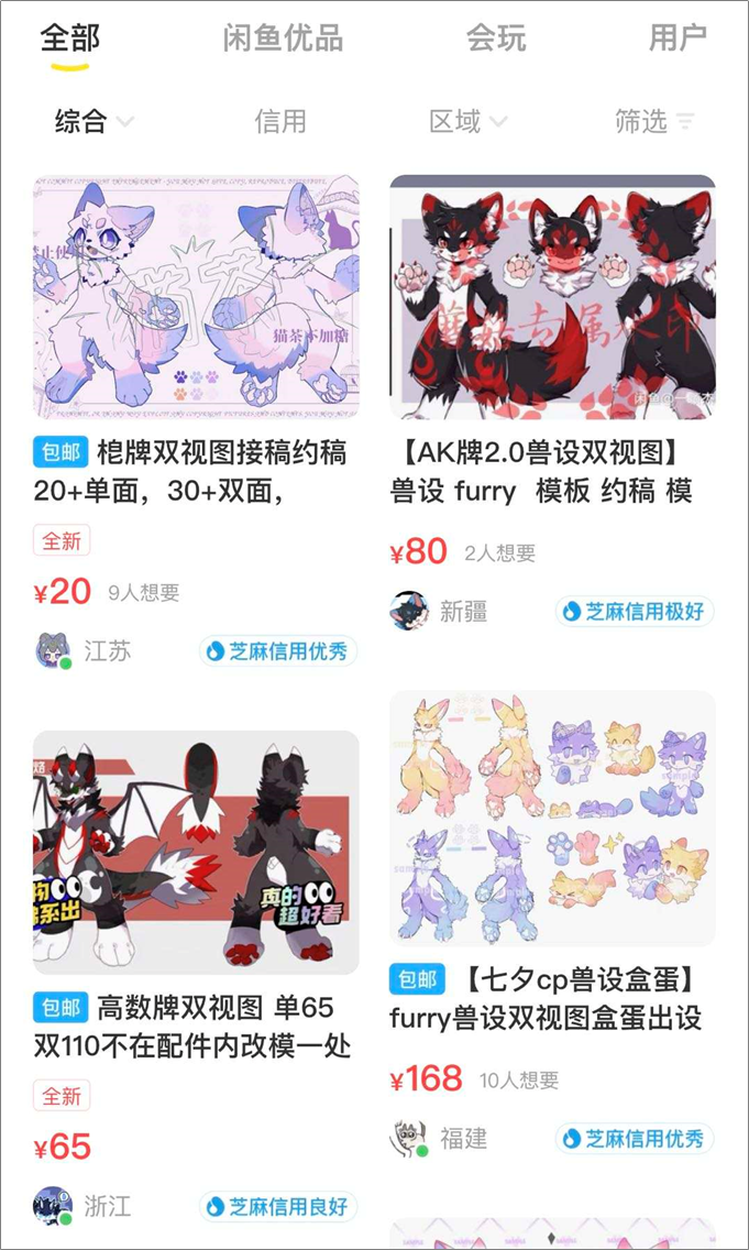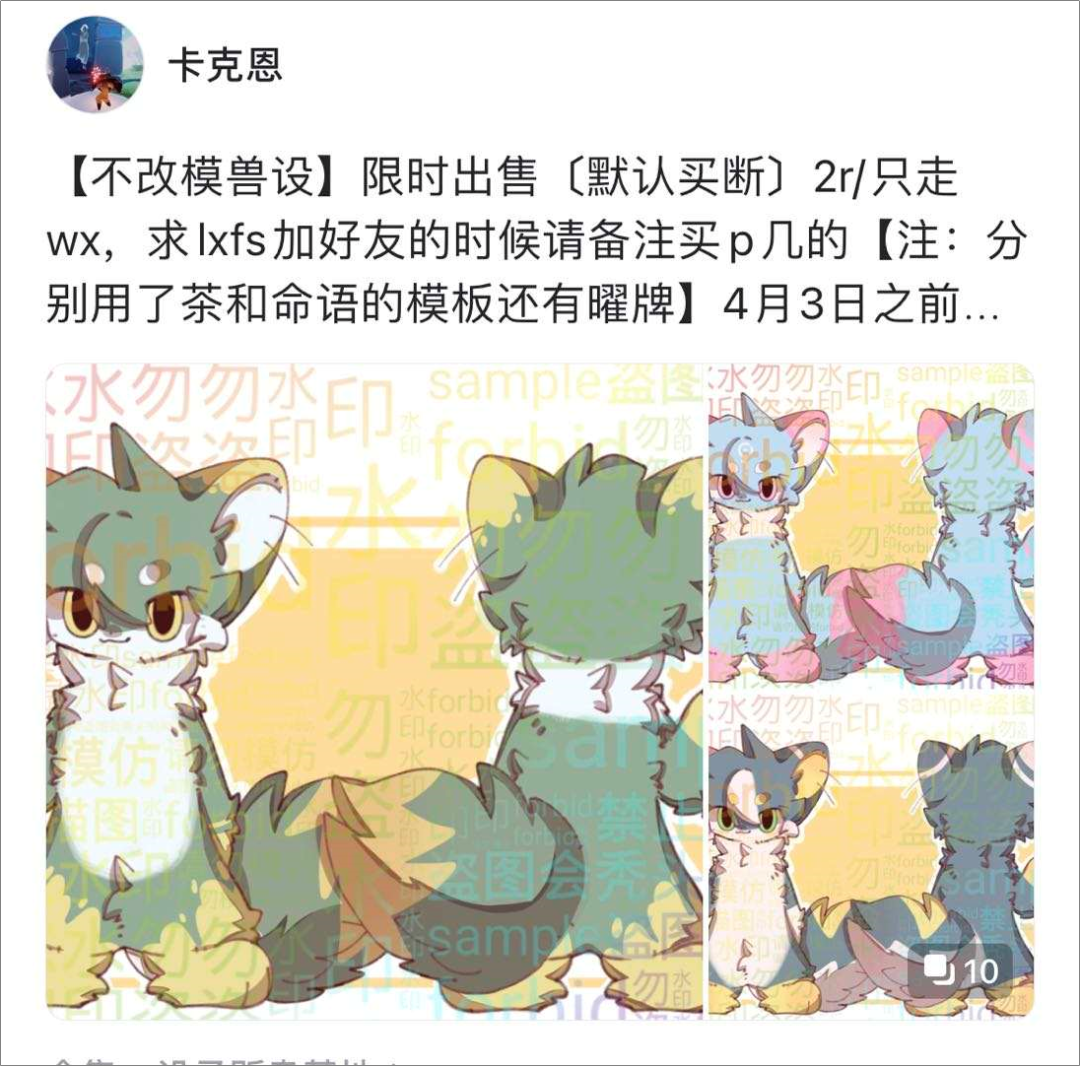 另外,还有一些设主 (兽设的主人) ,会将自己闲置/已经无感的兽设出售出去。