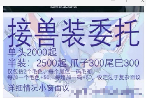 在拿到“双视图”后,还需要找兽装师,根据自己兽设的样式进行估价。