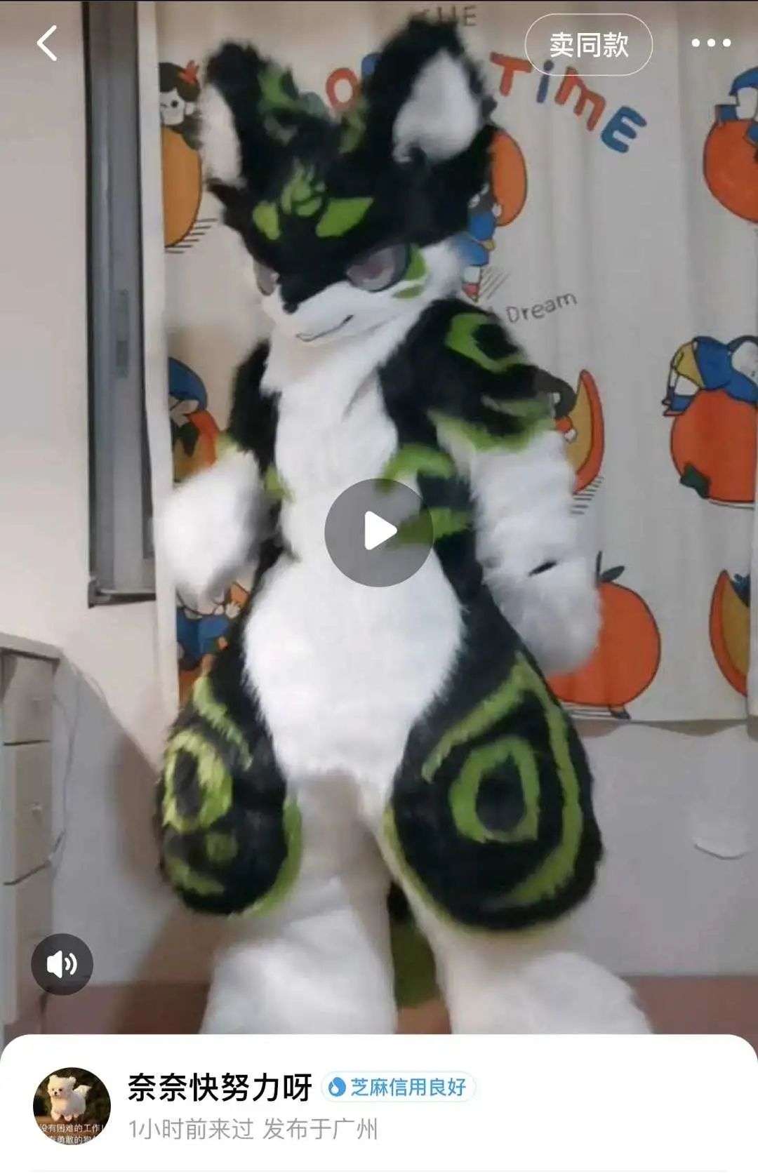 兽迷 @阿池 爆料,一开始只是为了给自己制作一套兽装自己动手,后来慢慢有了名气,开始有人找上门来定制兽装,靠兴趣实现了“自给自足”。