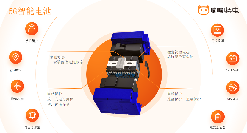 在5G智能电池技术上,嘟嘟换电2022年12月发布了自主研发的5G智能电池技术,通过电池搭载自主研发的BMS电池管理系统和5G智能电池技术模块,嘟嘟换电云平台可全程监控电池充、放电,监测车辆运动状态和骑行轨迹,预警电池和车辆的异常状况,提醒车主及时防范应对。配合电子围栏等技术,可改善车辆乱停乱放现象,降低管理成本。