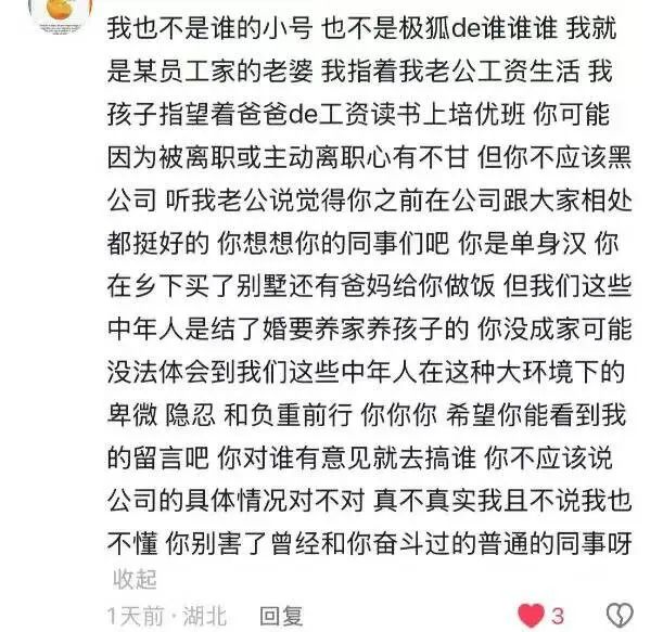 也有网友表示,“如果要黑自己前东家,最好换个账号.... 这种做法只会给自己挖坑。”对此,有网友回复称,“这个账号最有说服力,之前可是很喜欢公司的,换了 CEO 全都变了,员工心变了很正常啊。”
