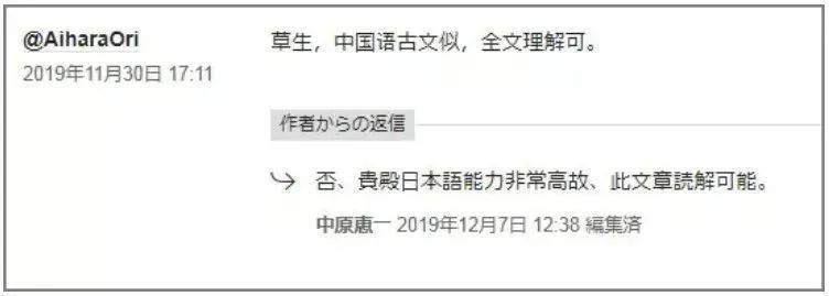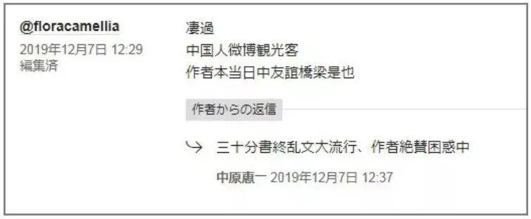 在几年前,中原惠一的作品曾在微博上火过一阵子,彼时就有微博观光团前去切磋伪汉语,还得到了作者本人的热烈回应。