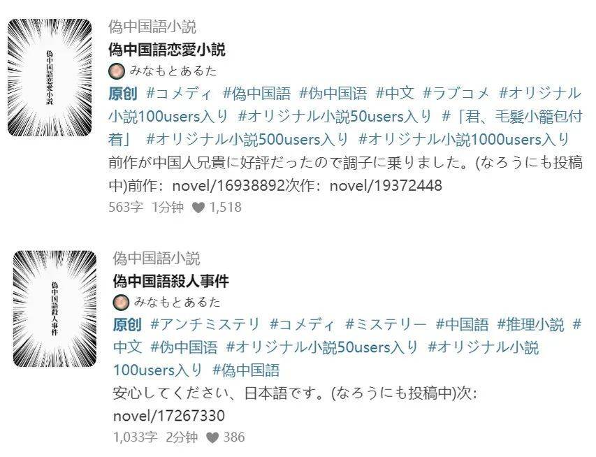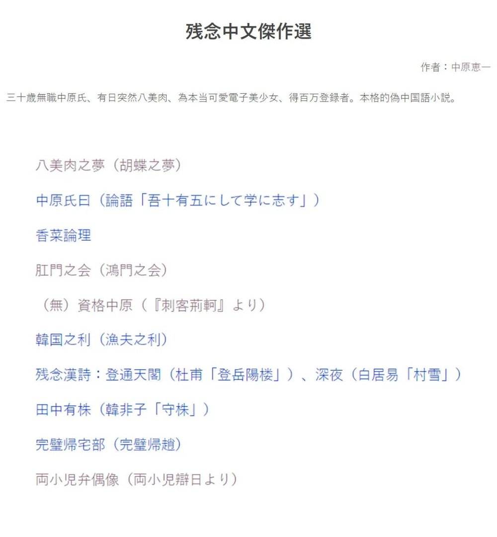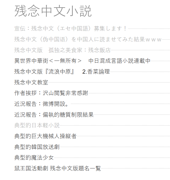 这位更是重量级——直接将自己的伪中国语创作做成了合集,起名“残念小说”。