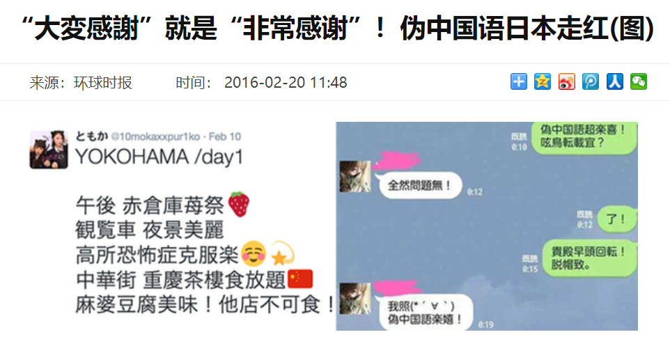 “伪中国语”这一现象,大概发端于2009年,2016年开始在日本互联网上走红,流行至今。