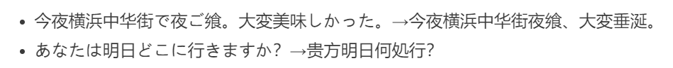 写出伪中国语的方法,简单地说便是将一句话中的日语假名去掉,只保留汉字的部分,再补充上一些必要的汉语表达。