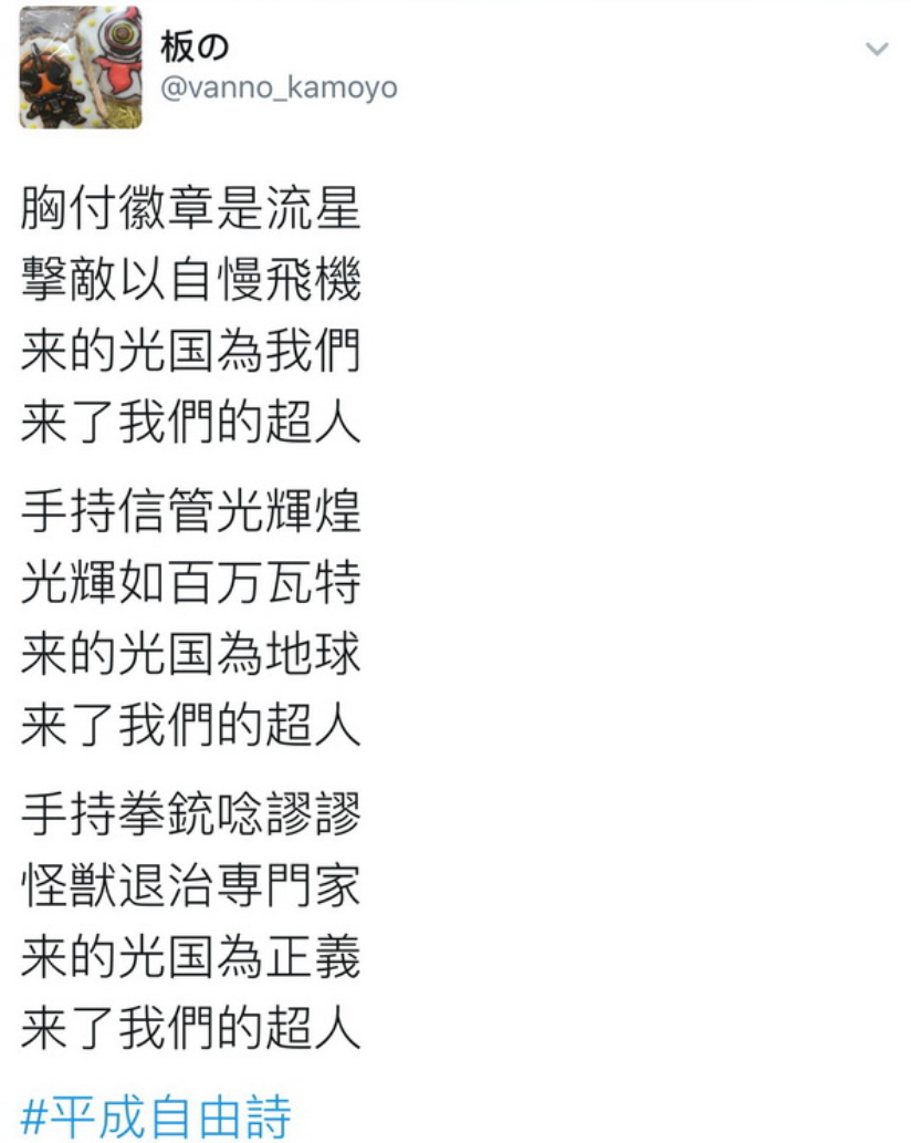 但其中确实也不乏有日本人曾尝试过正儿八经地搞创作,甚至还有人用汉字创造了一种诗体——平成自由诗。