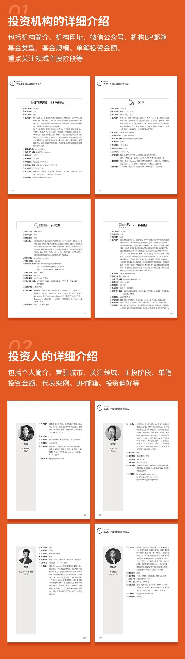 本书收录了2020年活跃、新的中国风险投资人,包括他们的关注领域,主投阶段,单笔投资,BP邮箱,代表案例等,80家投资机构。