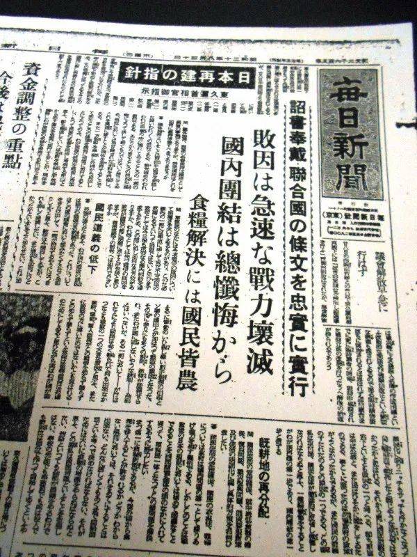 1945年8月30日,日本《每日新闻》围绕着东久迩稔彦“一亿总忏悔”的主张对其进行了报道(来源:mainichi.jp)