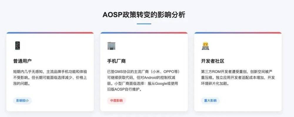 长期以来,AOSP也是移动开发人才的重要学习平台。许多中国程序员通过阅读AOSP源码、跟踪社区讨论来提升技能。Android系统的大部分代码将变成黑箱,中国开发者对主流移动OS的内部实现将知之甚少。这种知识断层对中国开源生态和教育培训都是一大损失。