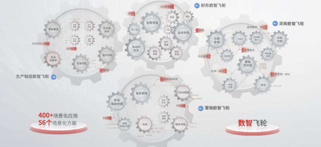 另一方面,用友在尝试进行数智化和云服务的结合。2022年,用友旗下的YonSuite品牌提出了“数智飞轮”场景化应用方案。数智飞轮1.0将YonSuite 四百多个微服务,按关键领域场景进行整合,打造出一系列场景化应用方案,帮助企业可以按任意场景切入使用,实现从局部到全局的快速拓展。