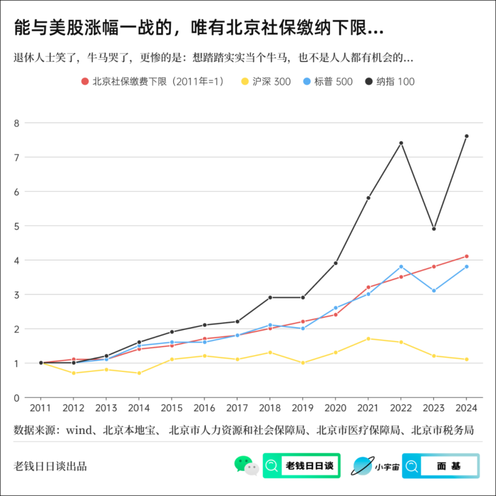 另一个并没有收到很多人关注的,暗中提高的成本是,社保缴纳基数的增速,它是高于GDP和人均收入增速的,我以上海的数据为例做了一张,这张图被很多同行引用过: