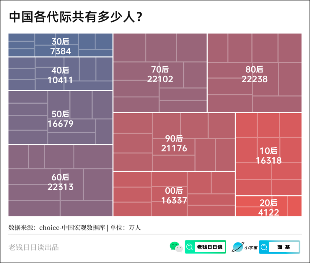 60后有2.23亿,70后有2.21亿人。