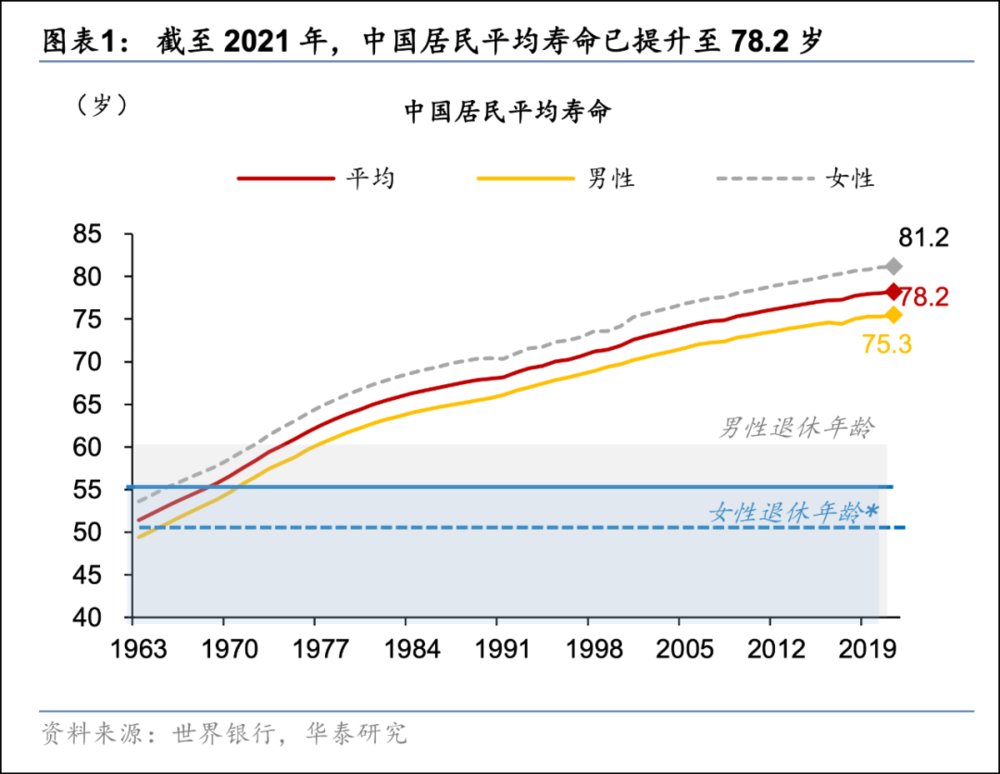 在调整之前,我国职工法定退休年龄沿用的是20世纪50年代制定的标准,当时人均寿命仅有50岁左右。