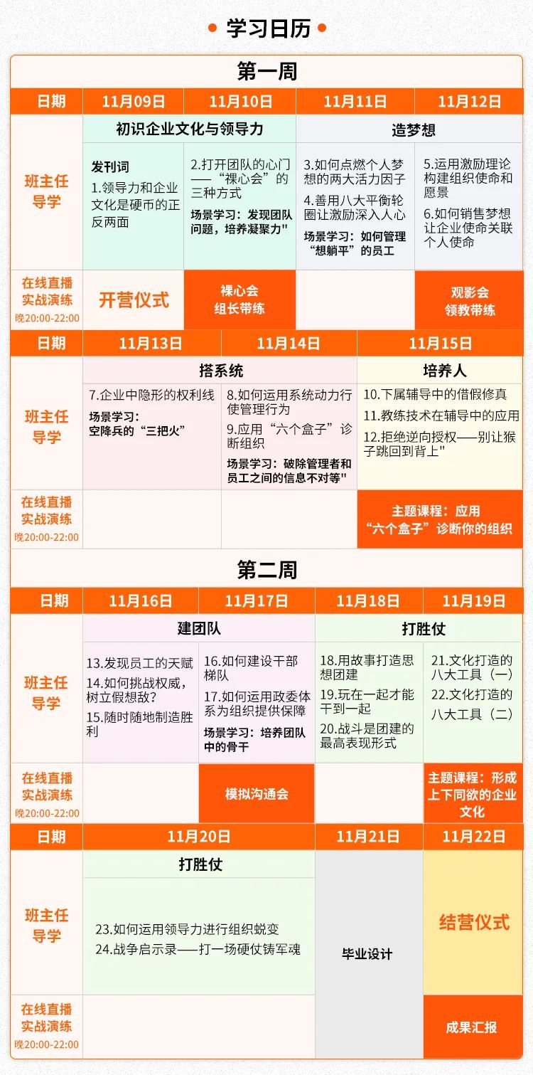 想要提升领导力、落实企业文化的企业创始人; 决心打造精锐团队的项目负责人、核心高管总监; 想要提高团队业绩成果的销售VP、经理、主管; 想要掌握体系化企业建设知识的HR部门负责人。