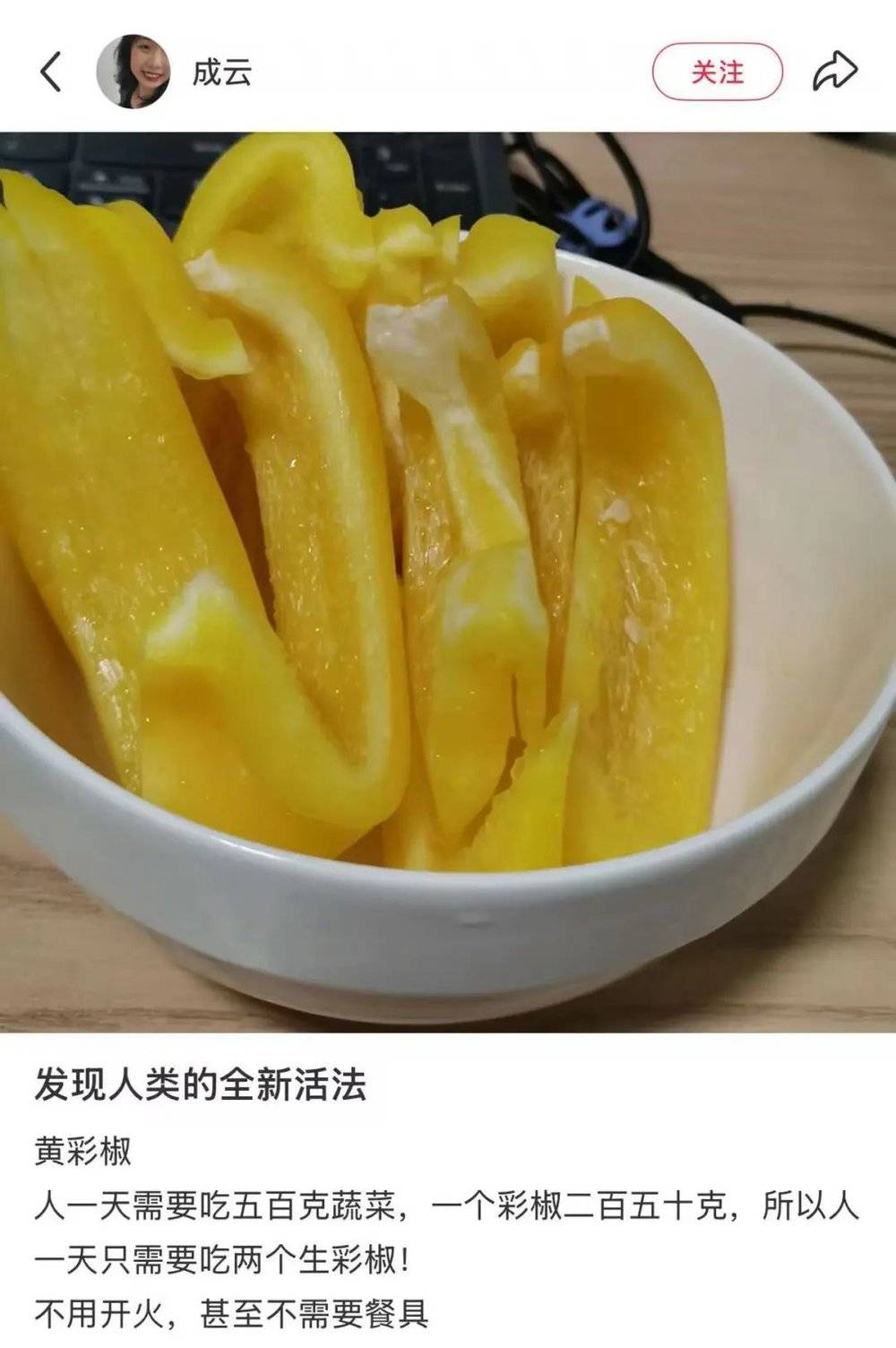 轻食、中式健康餐里有,狠人如张姐,直接在把彩椒当黄瓜啃。