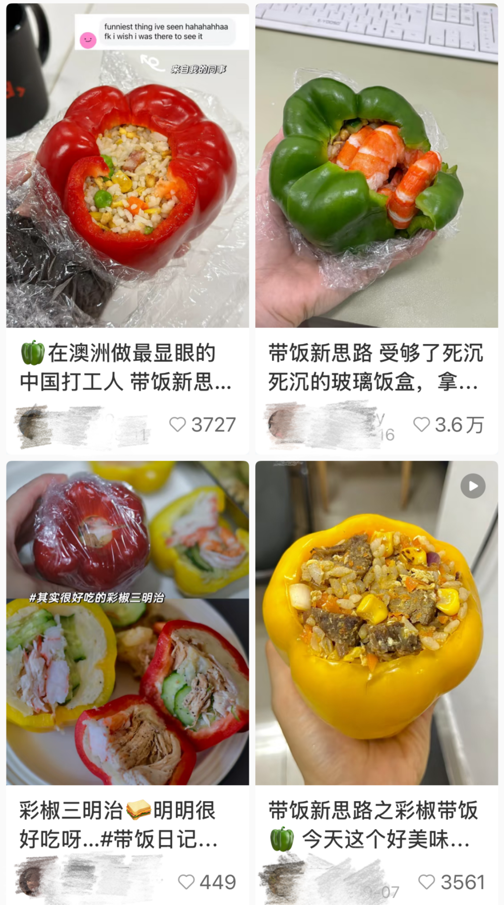 而饱受地铁安检之苦的打工人,已经把彩椒完成可食用饭盒了。