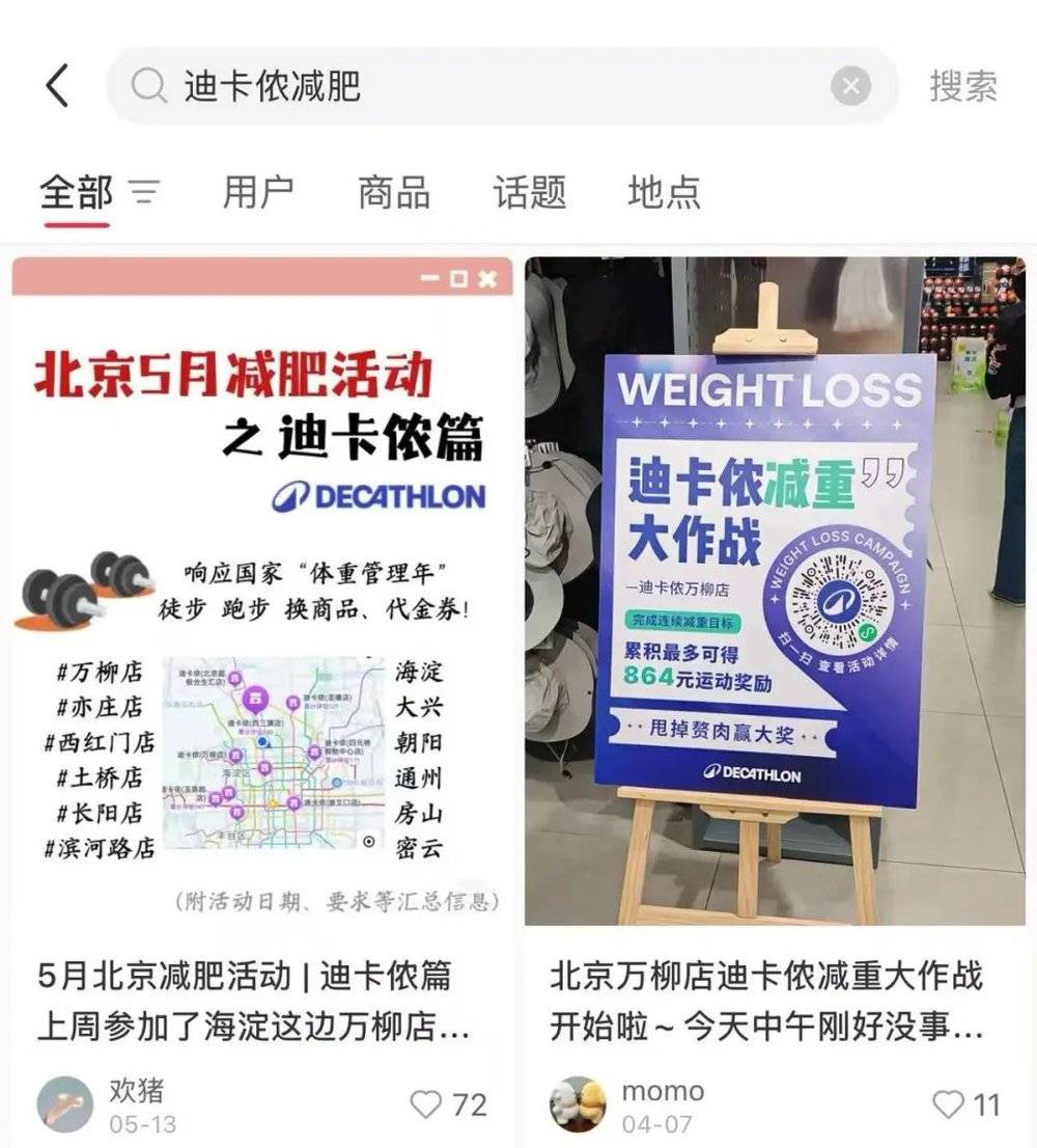 隔壁迪卡侬用优惠券诱捕消费者,“两个月瘦8斤就可以领取价值50元的优惠券”的力度比不上京东,但看起来设置的减脂速度很科学健康。