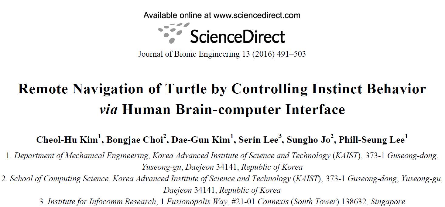 论文:Remote Navigation of Turtle by Controlling Instinct Behavior via Human Brain-computer Interface(通过脑机接口系统操控乌龟本能行为以进行远程导航)