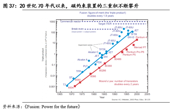 不论是采用惯性约束方式还是磁约束方式,聚变装置都是在不断提升三重积,来验证聚变技术的科学和工程可行性。目前,磁约束总体处于从科学可行性验证迈向工程可行性验证的阶段,惯性约束核聚变则还处于科学可行性验证阶段,仍需工程技术的持续突破。