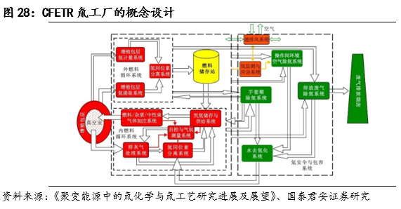 氘氚燃料的获取较为容易。其中,氘可通过电解重水得到,可供人类使用百亿年。氚虽然在自然界中总量少且分散,但可在聚变堆内用中子轰击锂6产生。