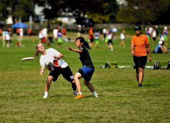 飞盘运动结合了橄榄球、足球、篮球等不同模式,对于高手来说强度足够,对抗性很强,并不容易。