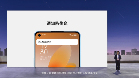 此外,得益于 IMX709 的低功耗设计,Reno7 还支持通知防偷窥技术,只要前置相机感知到别人靠近,就能自动隐藏通知内容。
