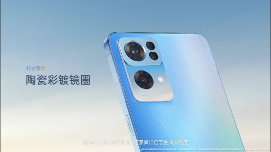 在机身设计上,Reno7 系列的全新配色“星雨心愿”上,OPPO在后盖上采用了航天级星雨光刻工艺,让玻璃后壳具备流星雨般的视觉观感和立体触感。而在相机矩阵上行业首创了陶瓷彩镀镜圈,并通过光线热弯工艺让相机矩阵的台阶部分变身呼吸灯。