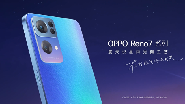 OPPO此前表示,Reno7系列首创星雨光刻工艺,在机身后盖雕刻出120万道流星轨迹,并首次采用星环呼吸灯设计,搭配直角中框设计,是Reno系列史上机身最薄、电池最大的一代机型。