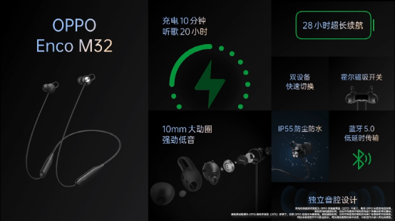 除了手机以外,OPPO 还发布了 OPPO Enco Free2i、支持快充的 OPPO Enco M32、以及 OPPO 智能电视 R1 乐享版。