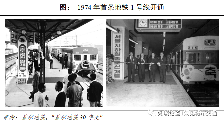 1974年,第一条地铁开通(地铁1号线),从首尔站到清凉里,全长7.8公里。但客运量占比仅为6-7%,在当时,首尔市内的主要交通工具是公交车,客运量占比为73%。