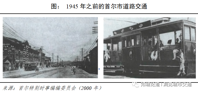 1945年,当时首尔市市民使用的主要交通工具是有轨电车。据统计,一天乘坐有轨电车的乘客达50万人次,占当时首尔市总人口的一半。