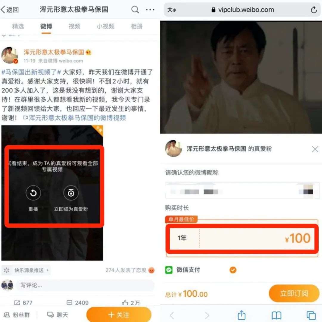没想到几天后,马保国就高调“复出”,不仅宣布开通了真爱粉群,需要一年付100元加入,还即将参演电影。