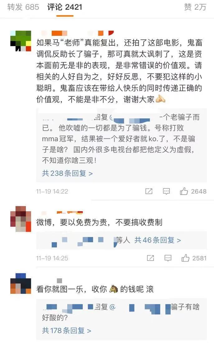 有人表示:“如果马老师真能复出,还拍了这部电影,鬼畜调侃反而助长了骗子,那可真是太讽刺了。”