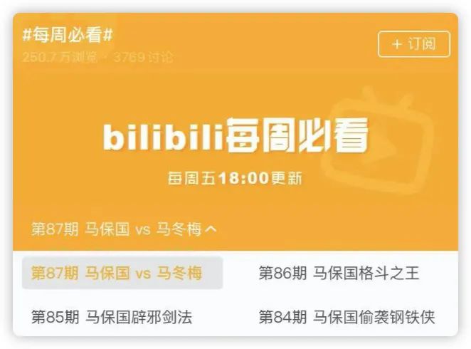现在,只要打开B站鬼畜区,就能看见马保国的“盛世”,鬼畜区榜单已经连续数天被马保国承包,以他为主题的鬼畜视频已经连续4期登顶“bilibili每周必看”榜单第一名。