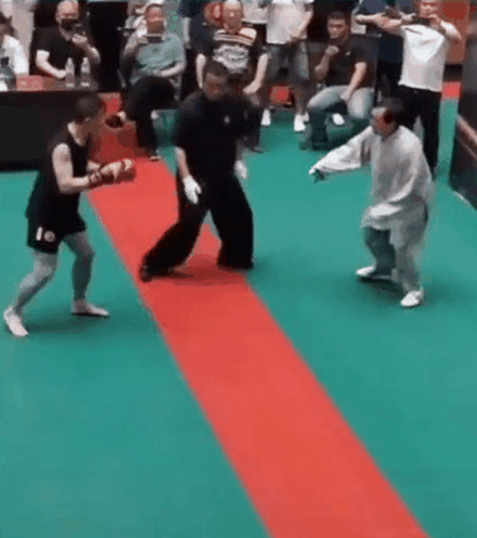 没想到令人大跌眼镜的是,在武林上“颇有威望”的马保国被对方4秒击倒、30秒就KO,他那些比划得很厉害的“接化发”等招式,更是一个都没用上。这下真是让整个“武林”哗然。
