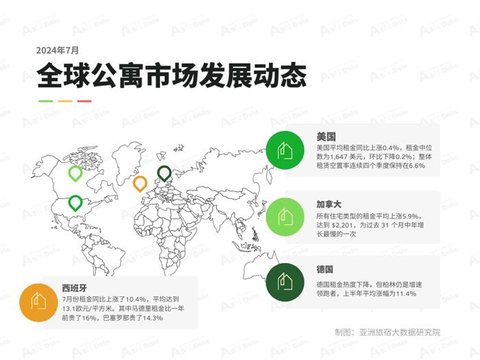 美国方面,根据房地产网站Redfin 更新的市场数据,7月,美国平均租金同比上涨0.4%,租金中位数为1,647 美元,环比下降0.2%。尽管租金较上年同期有所上升,但总体情况是,在疫情期间价格飙升的出租房市场正在回归正常水平。整体租赁空置率连续四个季度保持在6.6%,为2021年以来的最高水平,而5套以上公寓楼的空置率在第二季度为7.8%,高于去年同期的7.4%。全美平均租金较6月份环比下降 0.2%,比2022年8月份创下的1,700美元的历史最高水平低53美元。尽管租金略有下降,但对于租房家庭来说,负担能力仍然是一个严重的问题。